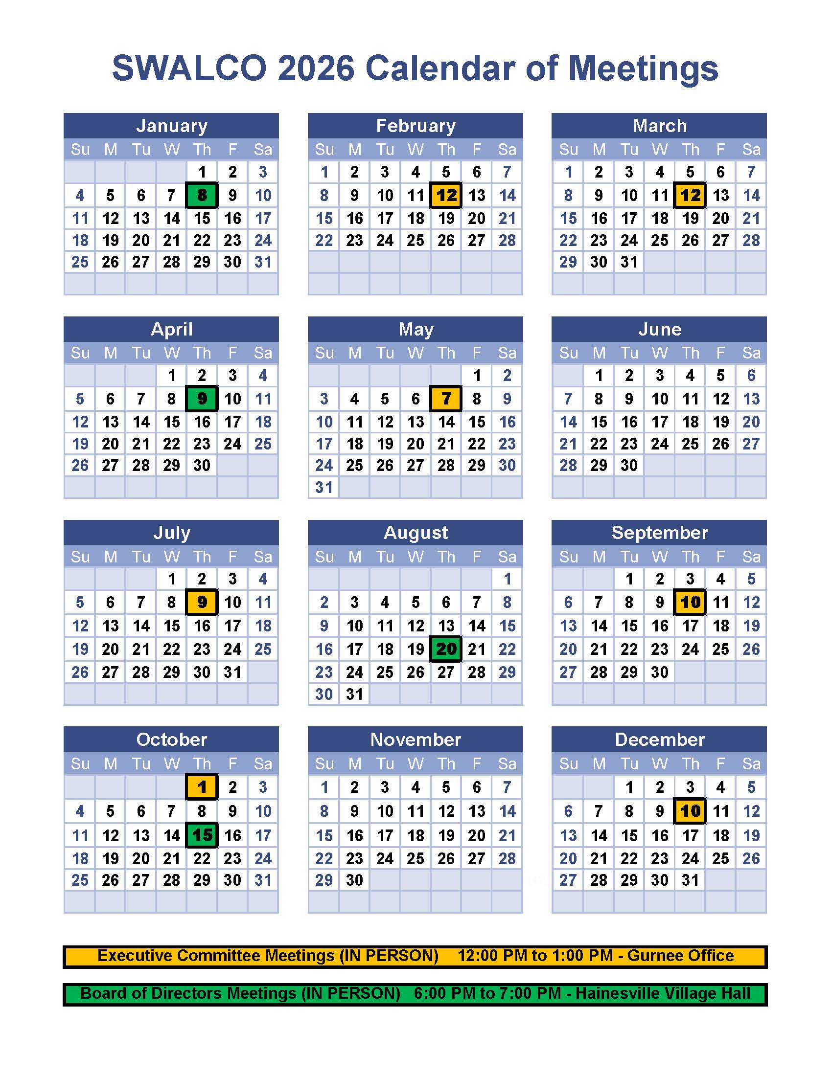 The SWALCO Executive Committee consists of one permanent appointee (Lake County), two appointees from municipalities exceeding 30,000, and six appointees from the remaining SWALCO members.
