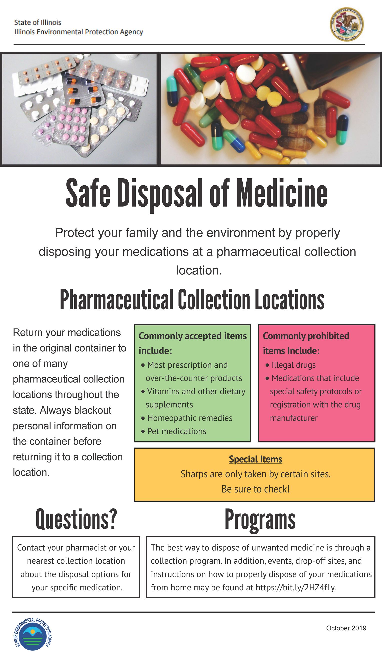On June 10, 2022, Governor Pritzker signed the Drug Take-Back Act into law. Beginning December 1, 2023, every Illinois county will be entitled to at least one medication collection location per 50,000 residents that is financed by pharmaceutical manufacturers. These collection locations will accept both controlled and non-controlled substances free of charge.
